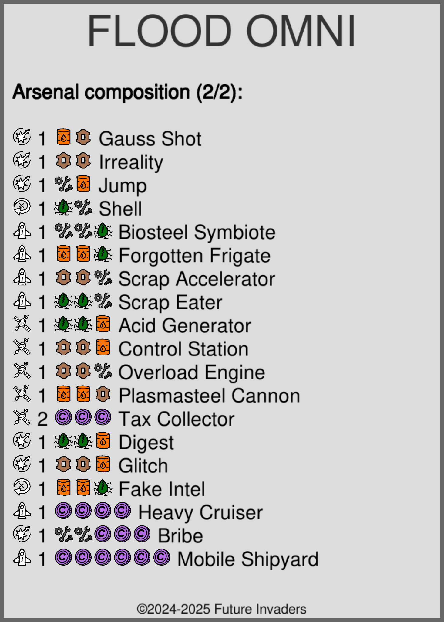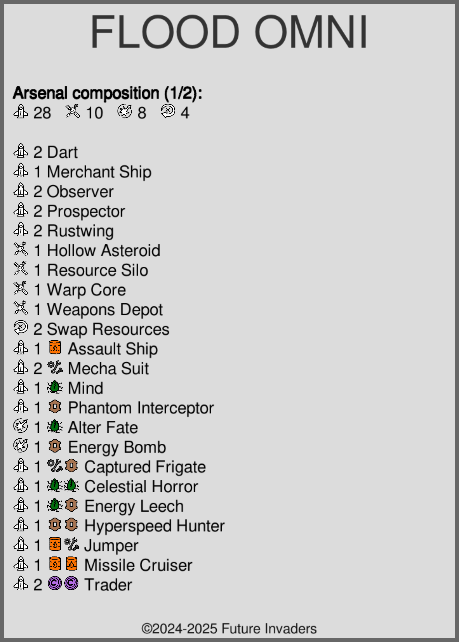 This arsenal likes to ramp up into a strong midgame, but might struggle in the early and late game.